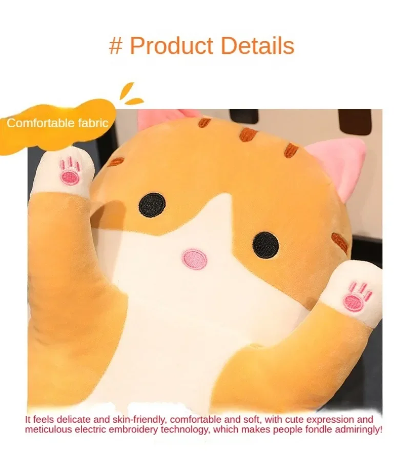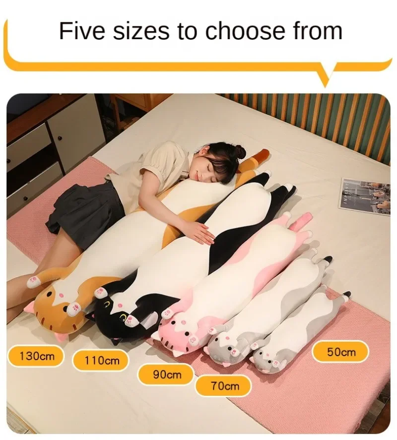 Cute Long Strip Cat Stuffed Body Pillow Cartoon Cat Plush Cushion Kawai Sofa Bedroom Throw Pillow Home Decoration Creative Gifts