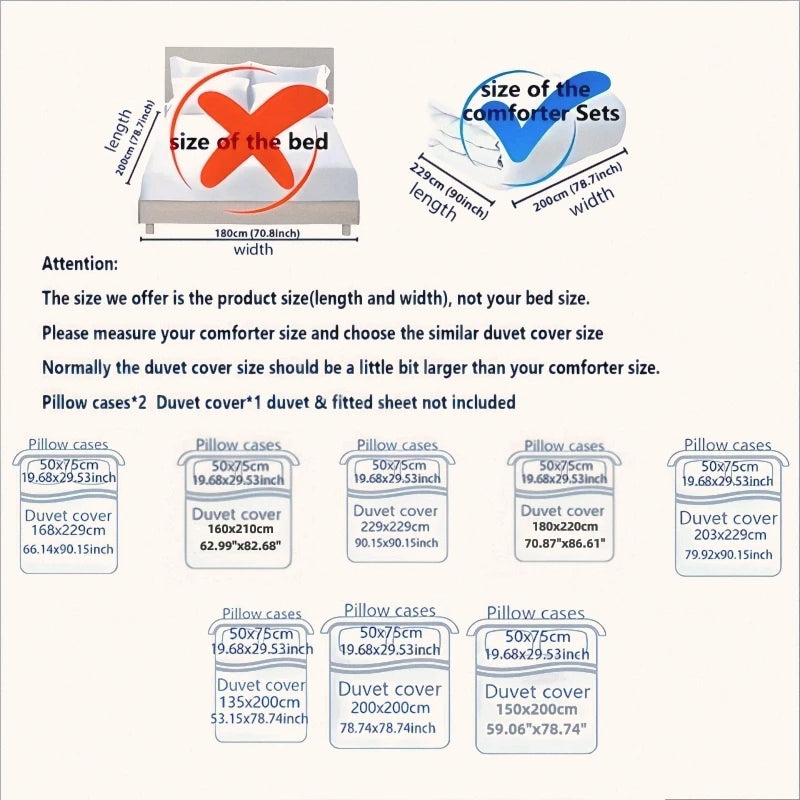 NOTICE: NO duvet insert or comforter will be included in any of our duvet cover sets. The photos are for display ONLY.