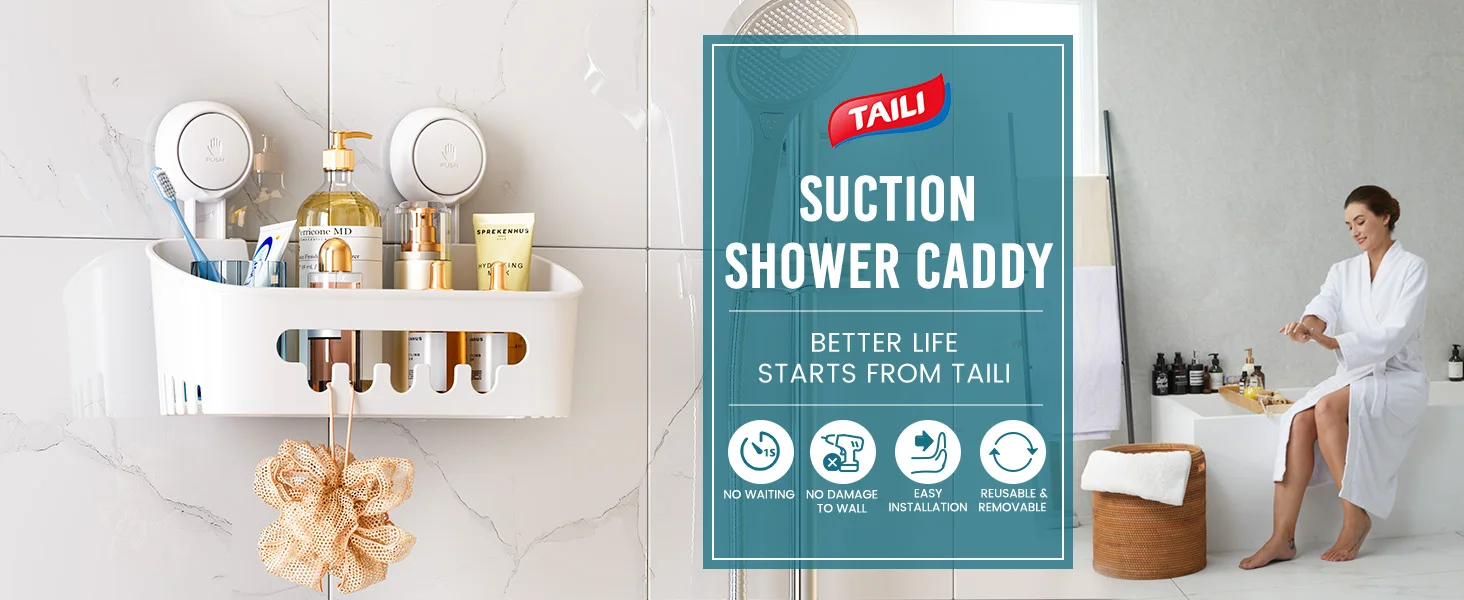 TAILI Shower Caddy Suction Cup Shower Shelf Suction Shower Basket Removable Powerful Shower Organizer Suction Bathroom Caddy