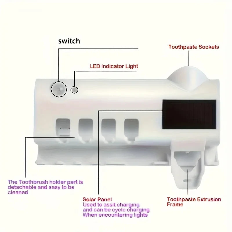 White Smart Toothbrush Holder with Auto Dispenser - USB Charging Wall - Mounted Ideal for Home & Business Bathrooms